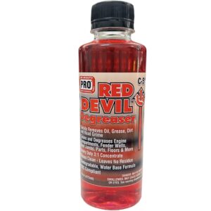 C-51 Red Devil™ is a fast working, concentrated (3-to-1) waterbase degreaser formulated to remove grease, oil, dirt and accumulated industrial road grime on engines, door jambs, fender wells,tires, floors and more. This highly alkalinecleaner uses penetrating solvents that cling to surfaces and instantly start to work, eliminating product waste. Red Devil™ quickly breaks down and dissolves grease, dirt, mud and road grime in many different applications. Rinses clean and leaves no oily film or residue. One of the best features of Red Devil™ is the cost effectiveness. C-51 is also nonflammable and biodegradable.