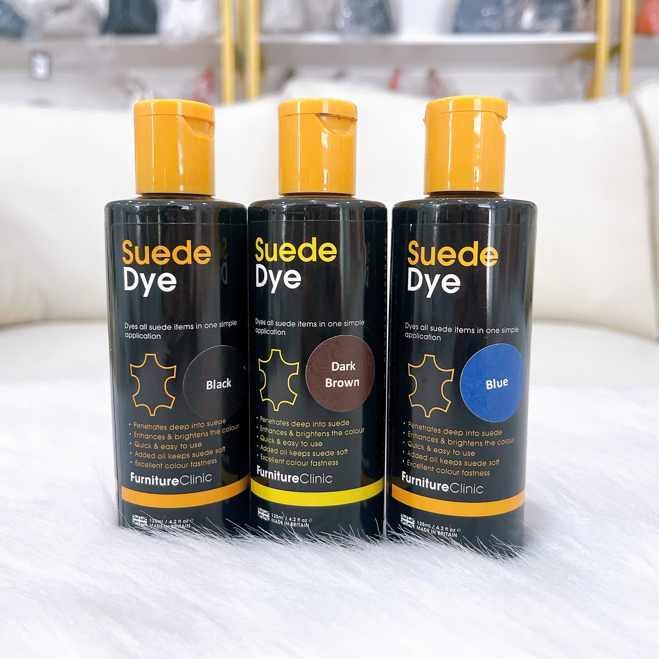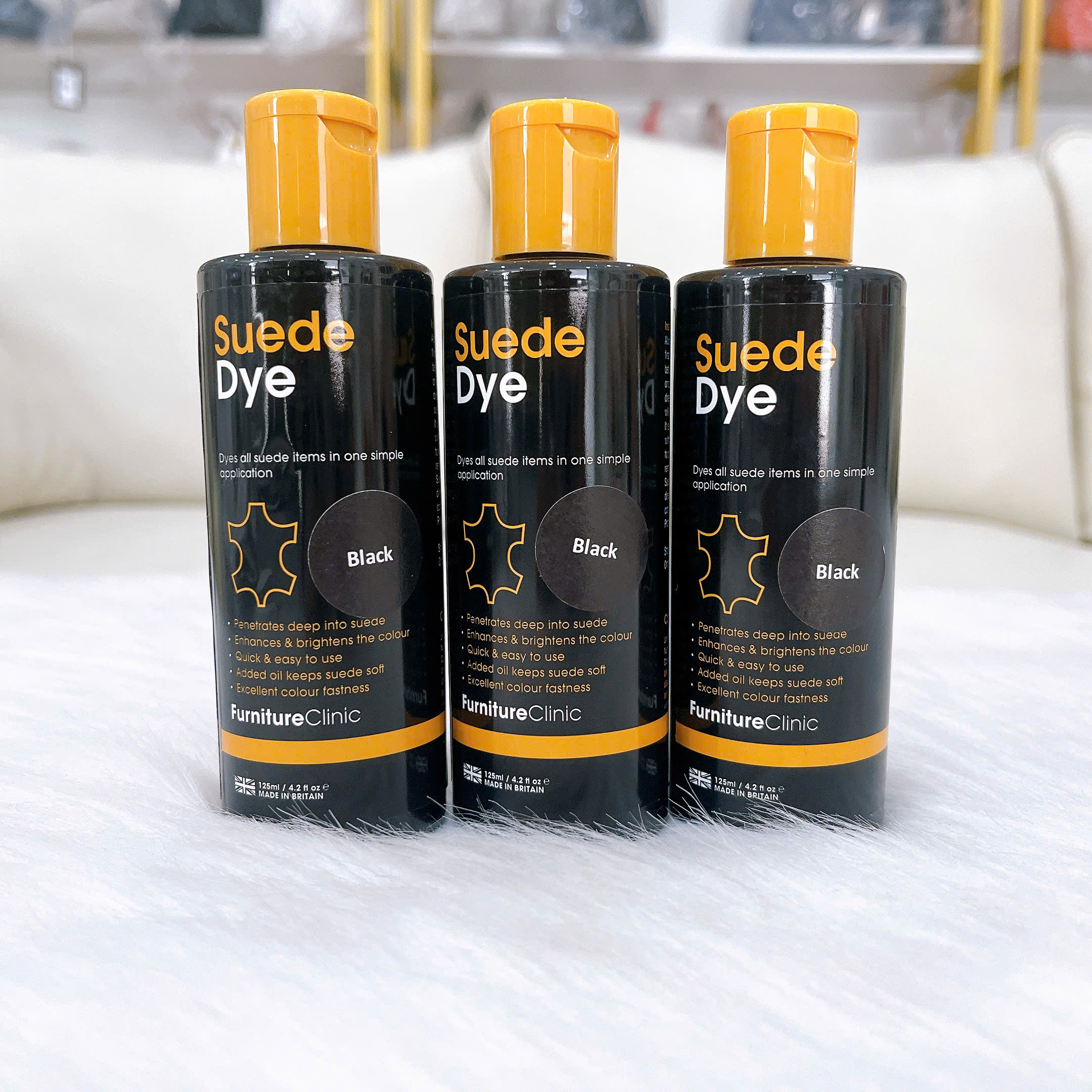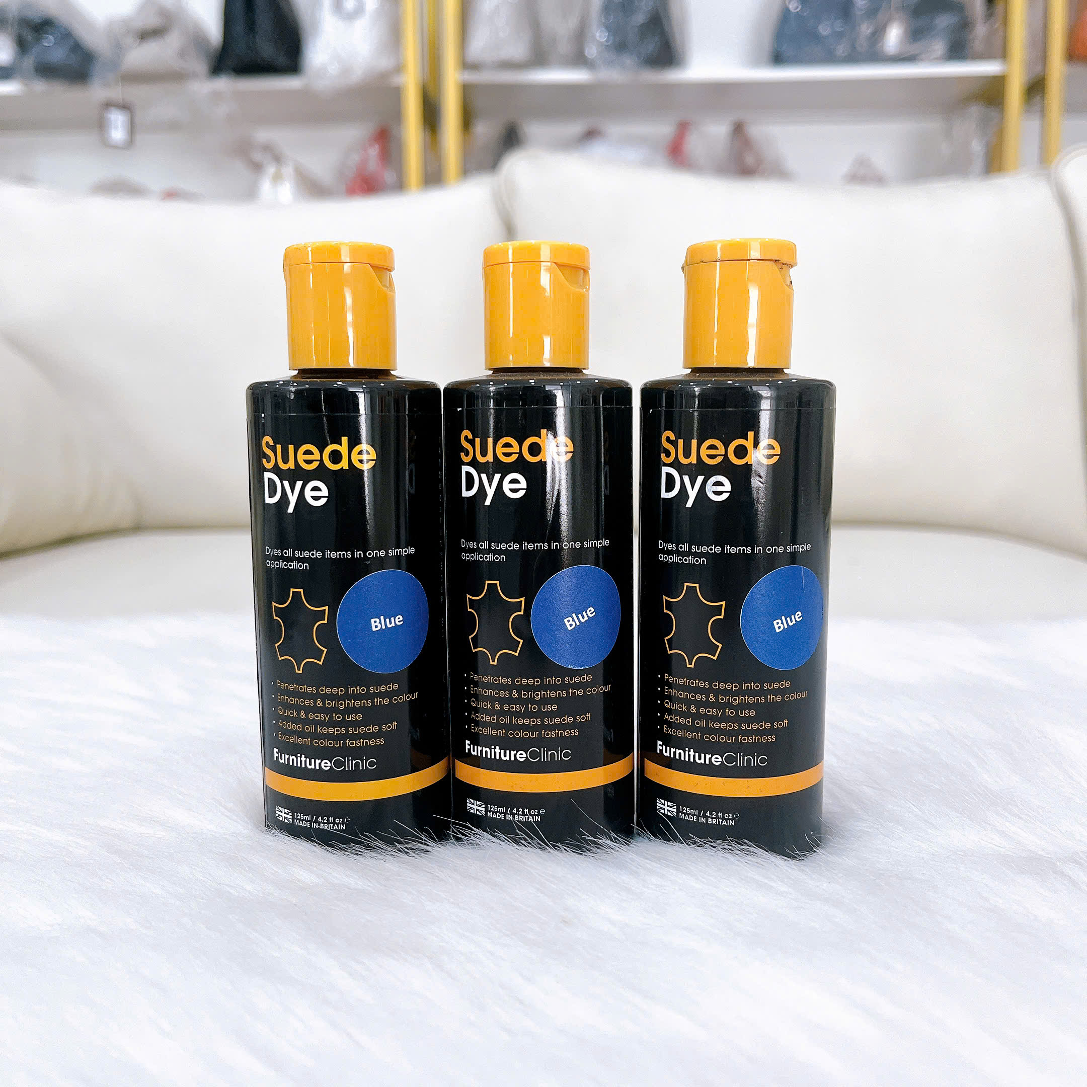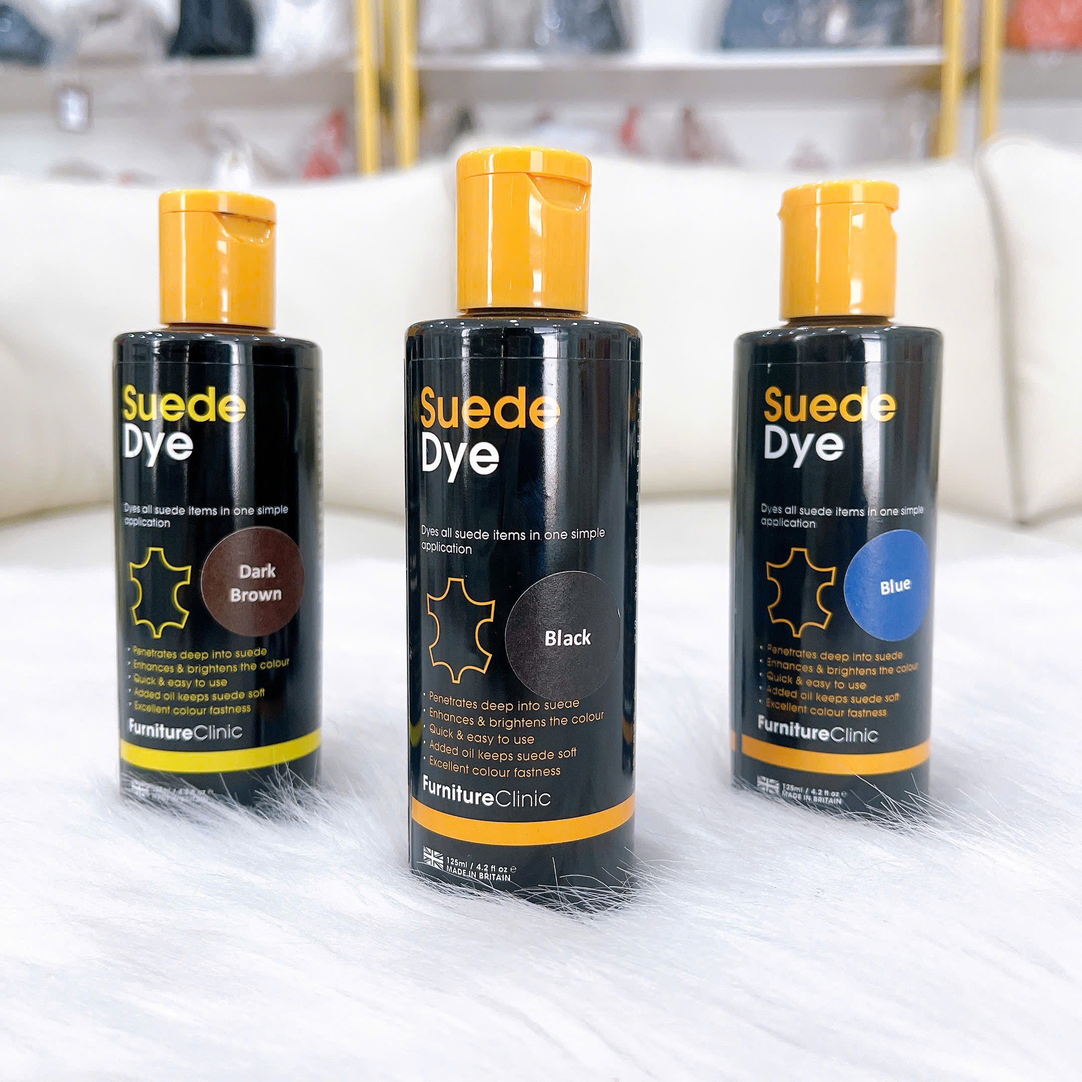Màu nhuộm da lộn Suede Dye đậm đặc giúp nhuộm tất các món đồ da lộn chỉ trong một bước đơn giản