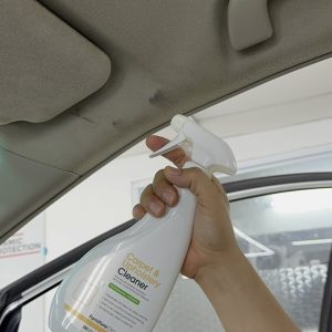 Đối với vệ sinh trần nỉ ô tô: Phun trực tiếp lên trần nỉ ô tô cho ướt nhẹ. Đợi khoảng 15 phút để thấm vào vải, lúc đó sản phẩm làm chất bẩn yếu đi và bật ra ngoài.